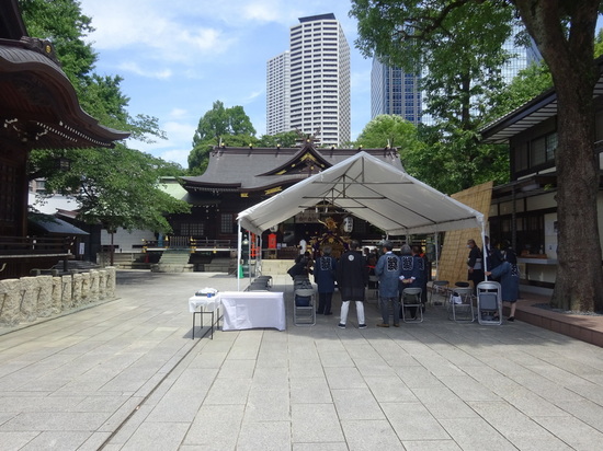歴史のある新宿の総鎮守、新宿十二社熊野神社様の境内にてご町会の皆様、鳶の皆様に迎えられ、無事ご納品出来ました事感謝いたします。