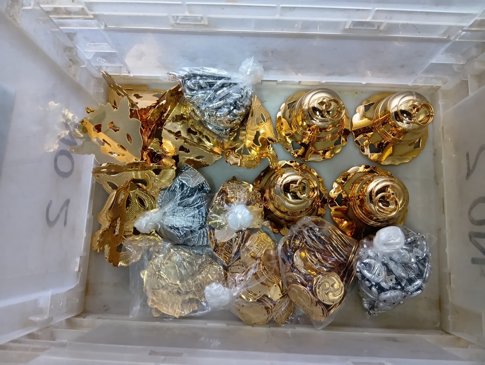 メッキを施したパーツを繋いで、瓔珞を仕上げていきます